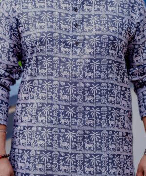 Men’s Tribal Art Cotton Kurtha – Indigo Blue & White